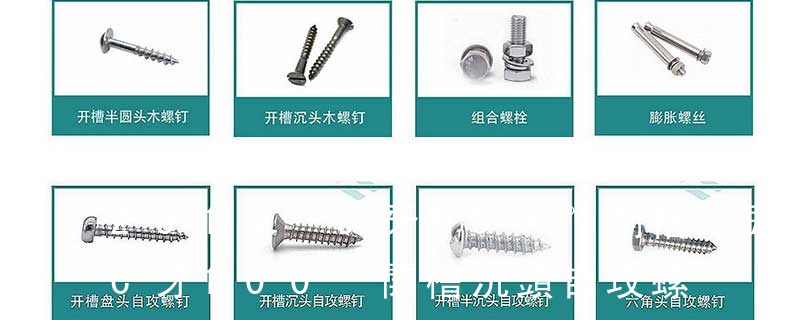 1、Flat:平頭 (鎖入后,頂部與工作件齊平)2、Oval:色拉頭、O頭、半沉頭 3、Round:圓頭 4、Pan:圓扁頭 5、Truss:大圓扁頭 6、Hex:六角頭 A-5:Finish Code/外觀處理。公制自攻螺絲 :于品名后方直接標(biāo)示 Tapp 一般是指尖頭的,粗牙的,質(zhì)地較硬的木螺絲,也有鋁合金、塑料的。用于金屬孔開螺紋的一種特殊自攻螺絲被叫做絲攻。自攻螺絲用于非金屬或較軟的金屬,不用打底孔和攻絲;自攻螺絲是尖頭的,這樣才能"自攻";普通螺絲都是