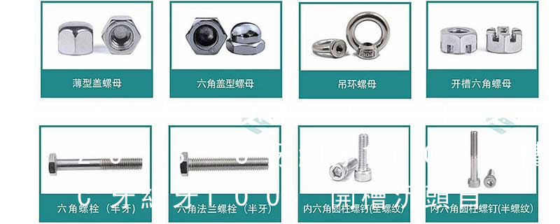 最常見的是六角頭螺栓 國標GB5783 GB5782 德標Din933 Din931 (8.8級粗牙外六角螺栓)圓柱頭內六角螺釘 國標GB70.1 德標Din912 還有很多像什么盤頭十字螺釘 沉頭十字螺釘 開槽盤頭螺釘 開槽沉頭螺釘等等很多種。 英制自攻牙:規格4#5#6#7#8#10#12#14#牙數AB牙2420201918161414A牙2420181615121110材料一、目前市場上標準件主要有碳鋼、不銹鋼、銅三種材料。